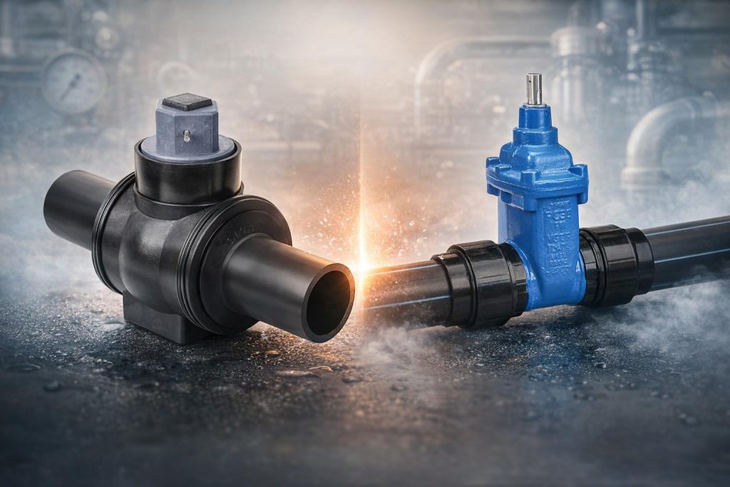 Задвижка перекрывает поток дольше: нужно сделать несколько оборотов маховика. Зато она стабильна на больших диаметрах и удобна как “основное” отключающее устройство на трассе.